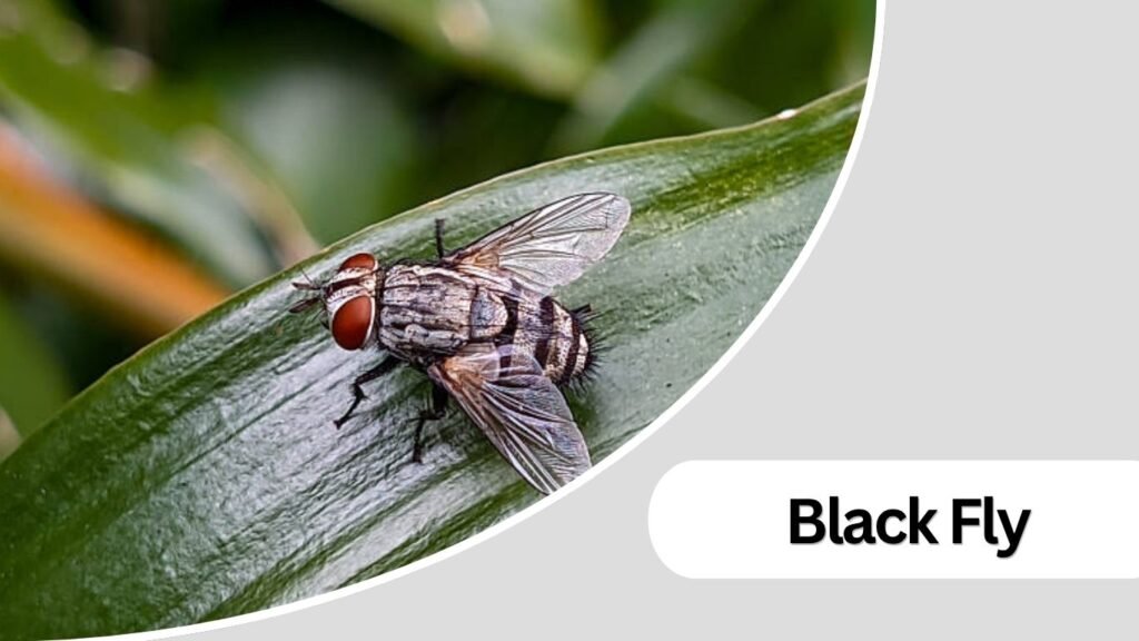 Black flies are small, dark-colored insects known for their biting behavior. They are commonly found in areas with running water and can enter homes, especially in regions close to rivers or streams.