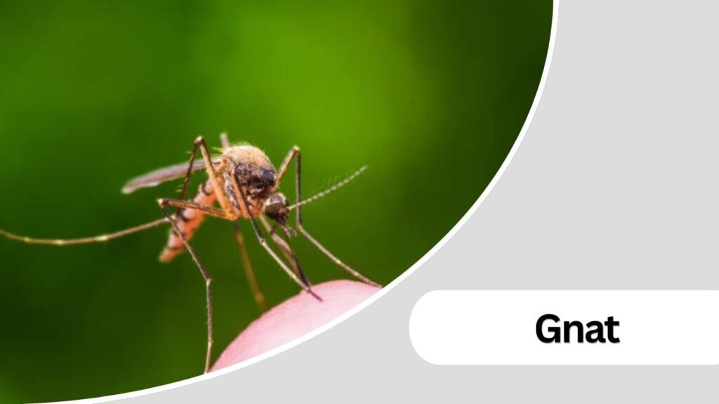 Gnats are tiny flying insects often seen hovering in groups indoors, especially near plants or moist areas. Some species can bite, while others are mainly a nuisance due to their constant presence.